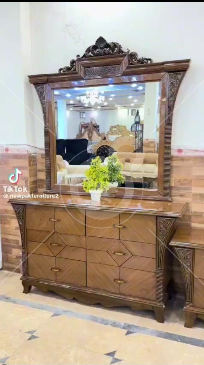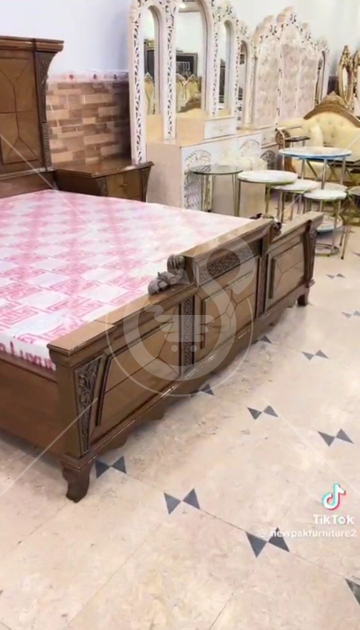 In this bed set you will get 1 bed without mattress 1 dressing table 2 side tables.